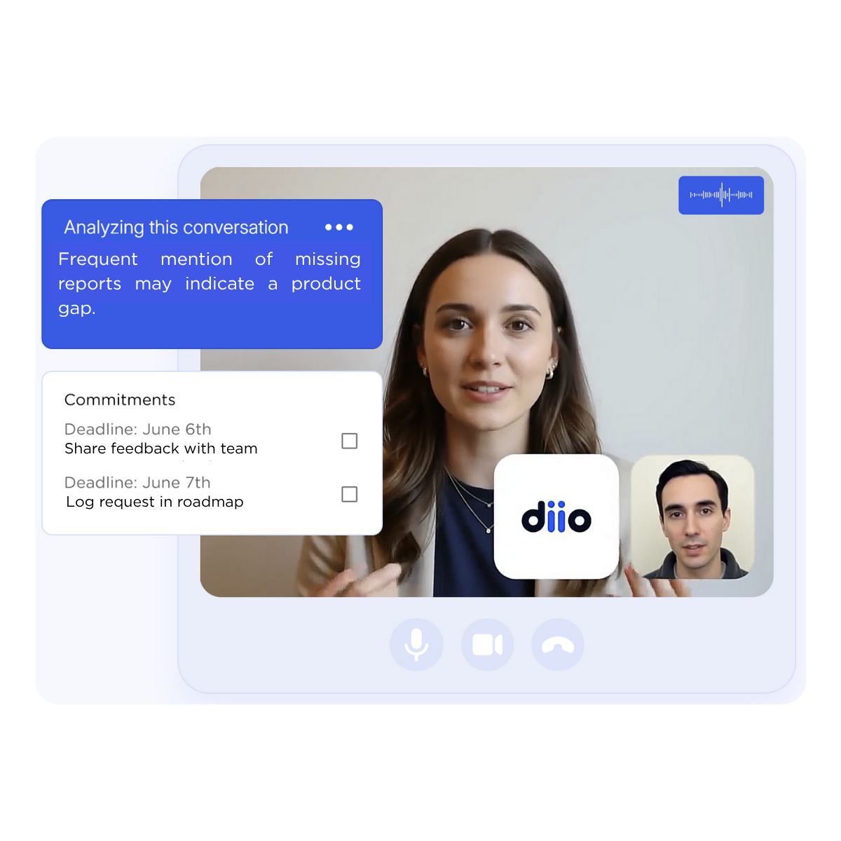 With diio, product teams listen to customers at every meeting, even if they're not there.